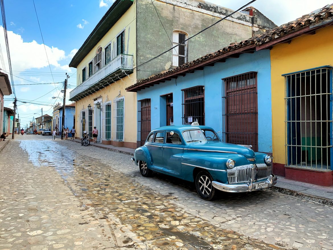 De taxi die we hebben afgesproken staat netjes om 09.00 uur voor de deur. Het is weer een oude bak die bijna uit elkaar valt, maar omdat we hem privé hebben zit dit dikke prima. We rijden door groen, groen en nog eens groen, tot we de zee zien. Nu nog een klein stukje en we zijn zo in Trinidad. De chauffeur en zijn vrienden op straat hebben, (zo lijkt het), nooit eerder een navigatie gezien. Hij heeft moeite met het vinden van het adres. Zelfs als we er nog maar twee straten van zijn verwijderd. Hij snapt me nog net op tijd, anders waren we uitgestapt, want bij elke keer vragen verlaat mijn telefoon de auto, wat ik helemaal niks vind.